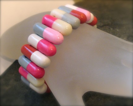 I have a new bracelet available that features the beloved Gearbunny pills!  The Pharma Bracelet is a colorful eyecatcher that’s sure to stir up some discussion.  I can picture this being a great addition to a Halloween costume, especially.
